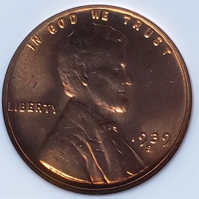 1939 S Lincoln Wheat Penny,MS 67, Red