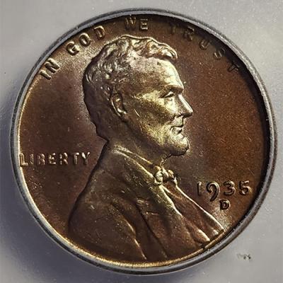 1935 D Lincoln Wheat Penny, MS 64, Brown