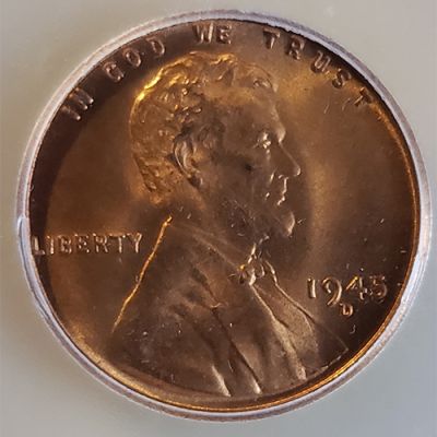 1945 D Lincoln Wheat Penny, MS 67 Red